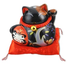 Фигурка-копилка 'Кот Манеки-нэко - Привлечение богатства', черная, средняя